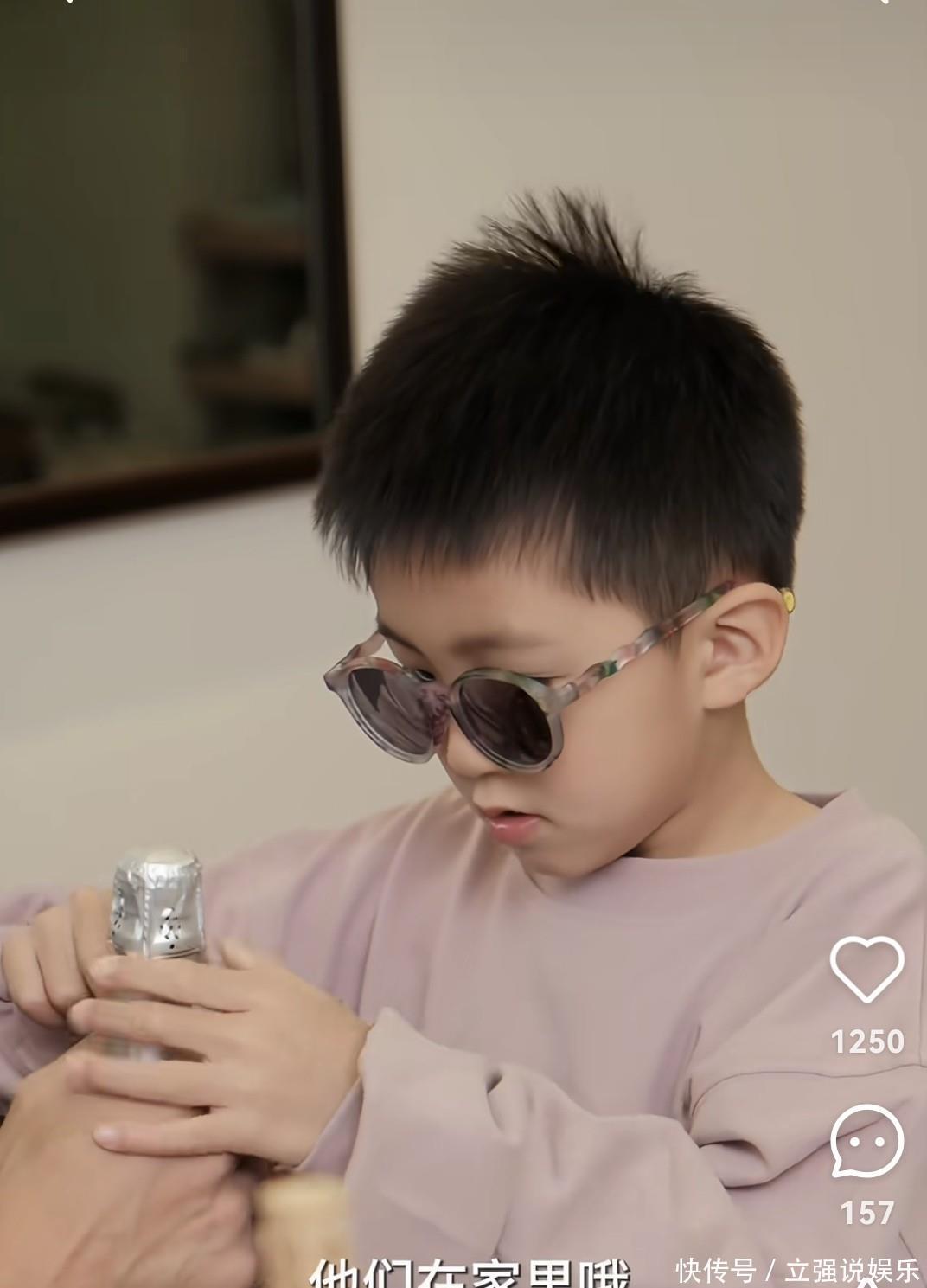 身旁的儿子穿着浅粉色宽松卫衣,戴着炫酷的墨镜,头发利落竖起,小脸精致帅气,眉眼间比爸爸多了几分灵动,被网友直呼“比明道还帅”。